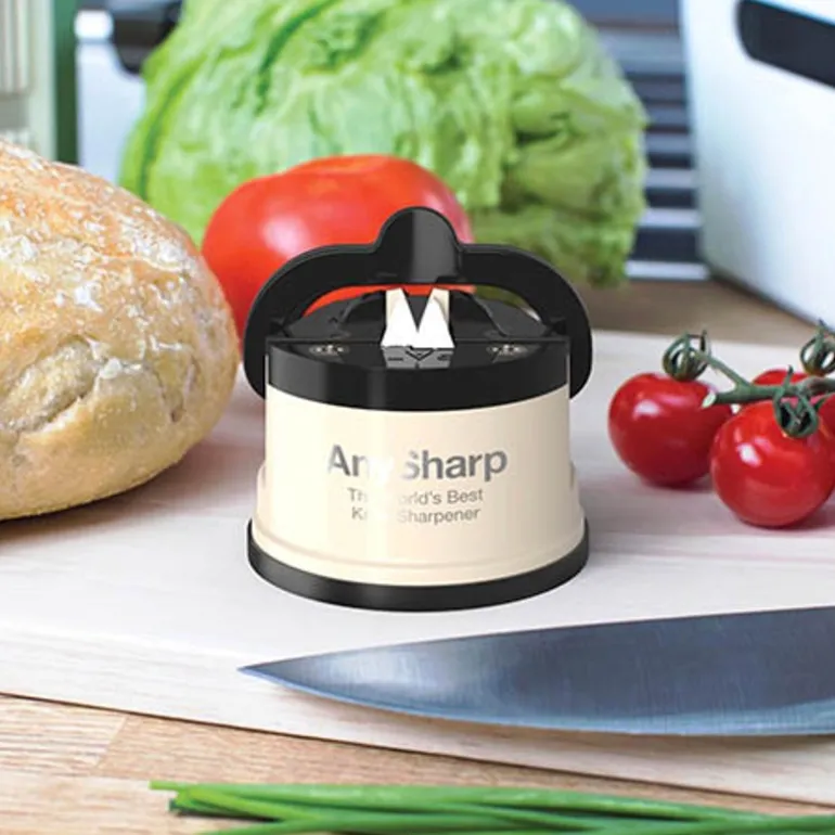 Con el paso del tiempo es normal que nuestros cuchillos pierdan su filo. Por eso en tu cocina no puede faltar el espectacular afilador de cuchillos anysharp. Este afila cuidadosamente todos tus cuchillos sin maltratar ni alterar la forma de algunos. Es de fácil manejo y su precio te sorprenderá.