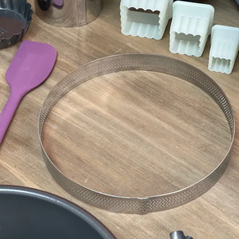 El aro para tarta perforado es indispensable para aquellas personas que elaboran tartas con gran frecuencia. Un utensilio sin duda indispensable en repostería.