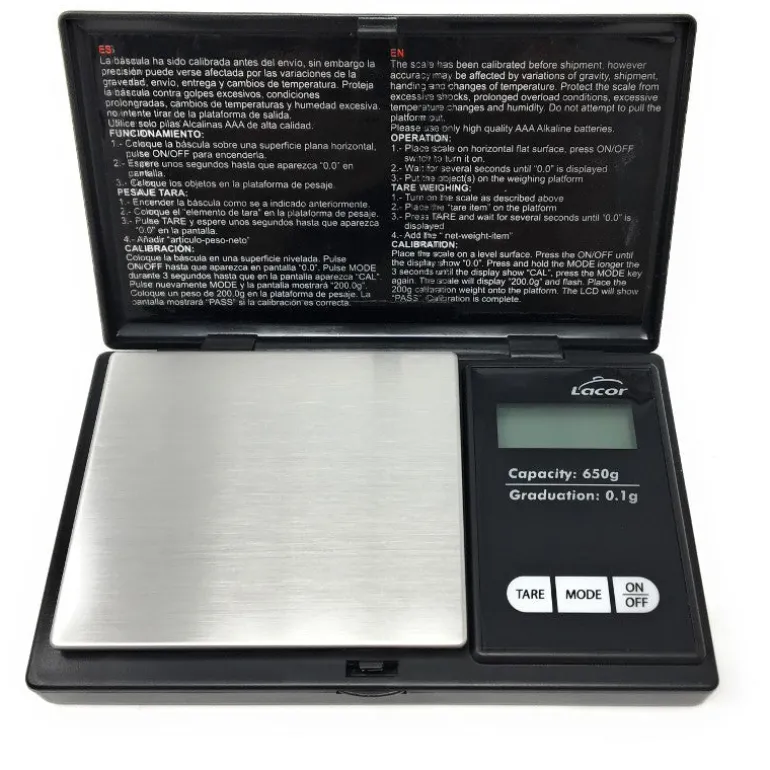- Unidad mínima de pesaje: 0.1 Gr.