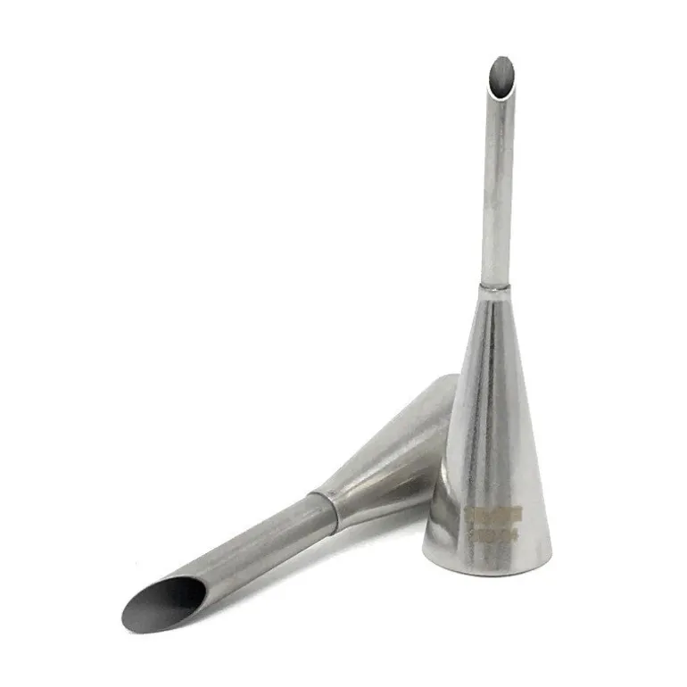 Cuenta con un diseño tipo embudo pequeño, mismo que mantiene una punta larga con un formato similar al de una jeringa, pero con tubo más ancho.