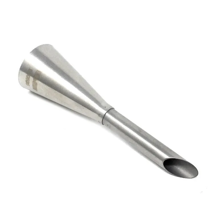 Se diferencia de la boquilla para decorado en que, gracias a su formato cilíndrico de punta alargada, facilita el romper discretamente la corteza de la masa ya horneada de nuestro postre y, con ello, nos permite rellenar con cremas, chocolate y otros ingredientes viscosos utilizados en repostería.