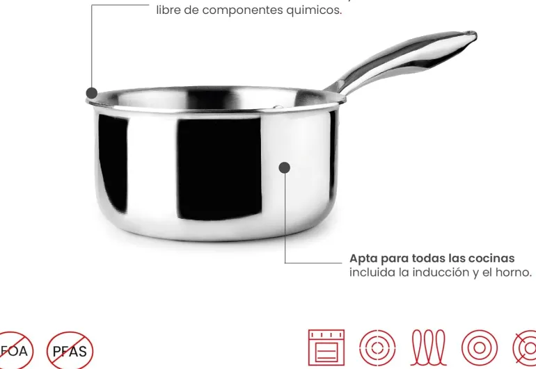 Acero inoxidable Apto para induccion y sin antiadherente.