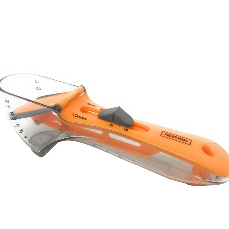 La cuchara medidora para cocina y repostería aquí presentada cuenta con un diseño moderno, fabricacion en plástico resistente translucido, mantiene así mismo un mecanismo de cierre- captura que se utiliza a modo de cúter, haciendo posible coger porciones de ingredientes líquidos o solidos permitiendo así tenerlos listos para el momento de añadirlos a su receta.