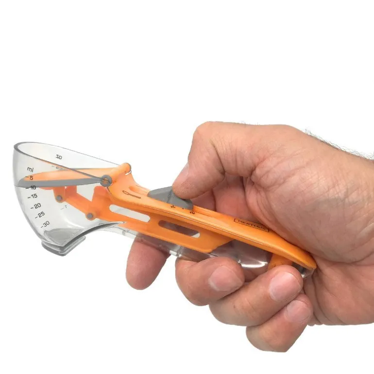 Uno de los aspectos más importantes al cocinar, tanto si se hace en casa como en la cocina profesional, es medir adecuadamente los ingredientes. Si bien en cantidades relativamente abundantes en la receta de un plato no resulta difícil la medición, cuando el ingrediente se mide en decilitros o gramos suele resultar complicado ser exacto y, en algunas recetas, la exactitud es la diferencia entre un plato delicioso y uno desabrido o demasiado especiado. Es por ello que toda herramienta que nos permita medir ingredientes en cantidades difíciles de manejar, es bienvenida, tal como lo es esta cuchara medidora, ideal para medir tanto líquidos como sólidos.