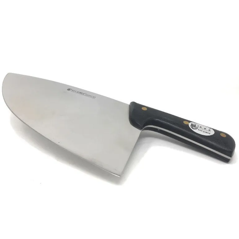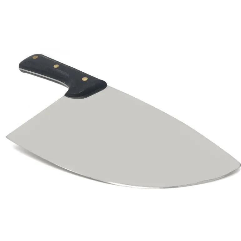 Cuchilla chuletera con forma de media luna especial para golpe y corte de chuletas ya que su hoja es mas ancha y permite este tipo de uso sin dañar la hoja, tambien se puede usar para filetear carnes, Esta fabricada en acero inox-1 DIN X40 Cr 13 y mango POM (El Polióxido de metileno es un termoplástico cristalino de alta rigidez. muy resistentes e indeformable a temperaturas extremas). Su mango es ergonomico pensado para profesionales que requieran hacer de esta cuchilla de carnicero un uso prolongado. Este Cuchillo de media luna para filetear lo tenemos disponible en 27 o 25 cms de largo de hoja.