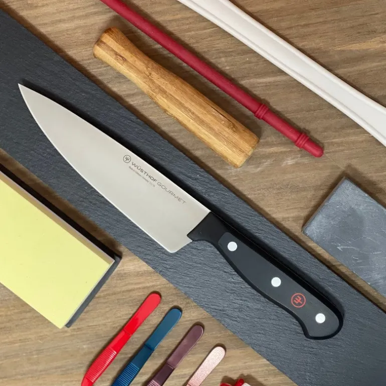 Wüsthof Gourmet es la opción perfecta para quienes buscan cuchillos de cocina de calidad a buen precio. La serie Gourmet cuenta con una gama de hojas de corte con el nivel y calidad de un cuchillo profesional, esto en un formato de construcción que permite un precio más accesible, pero sin restar calidad de forjado y que sigue manteniendo ese filo increíble que destaca a los cuchillos Wüsthof en todas sus series. Sin duda alguna una excelente inversión calidad-precio, siendo un ejemplo de ello este cuchillo Chef de la serie Gourmet de Wüsthof.