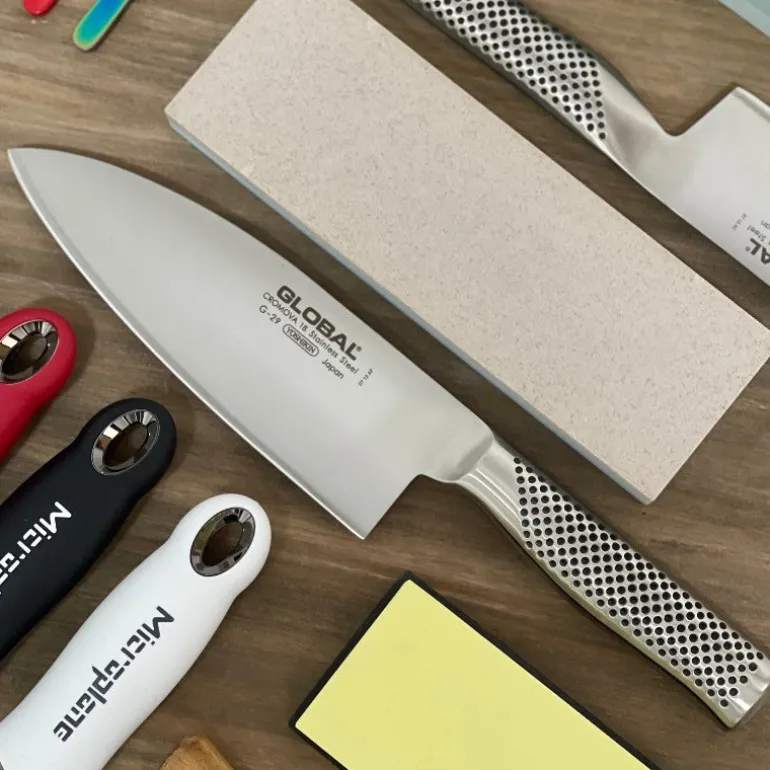 - Fabricado en la misma tradición de diseño y calidad que el resto de los productos Global, en acero Molibdeno Vanadio con 18% de cromo.