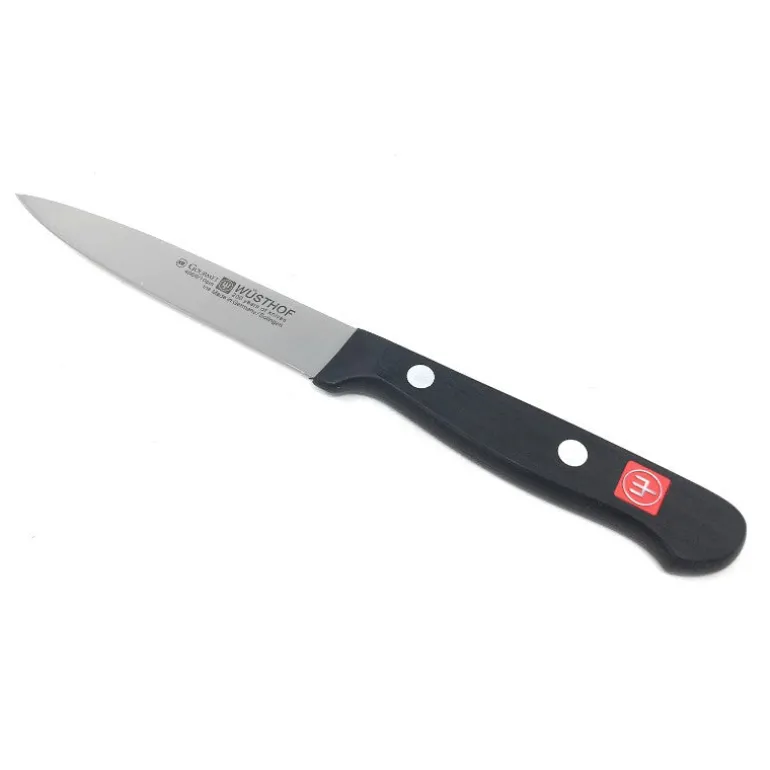 Los cuchillos de cocina Wüsthof Gourmet cuentan con una hoja de corte con esa calidad de forjado y potente filo presente en los cuchillos de gama Premium, más contando con un precio accesible que hace de esta serie una de las mejores inversiones cuando se buscan cuchillos de cocina de calidad para el hogar. Un ejemplo de esta serie podemos apreciarlo en este cuchillo pelador Wüsthof Gourmet.