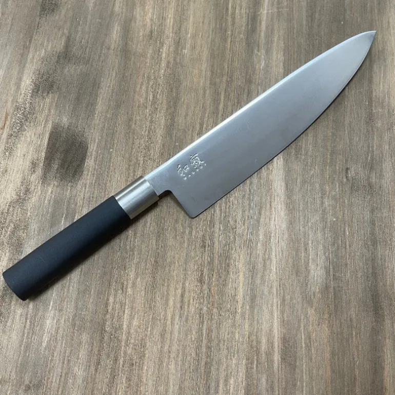- Cuchillo japones KAI serie Wasabi Black con 23 cms de longitud de acero inoxidable pulido.