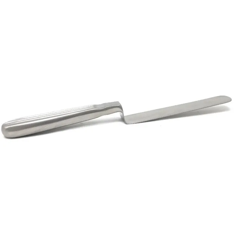 Cuenta con un mango grueso que sostiene la hoja con un formato acodado que hace posible recoger los alimentos de forma sencilla y lejos del contacto con nuestros dedos. El mango se encuentra modelado para ofrecer un agarre cómodo a la mano.