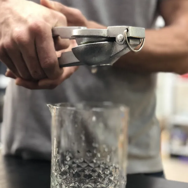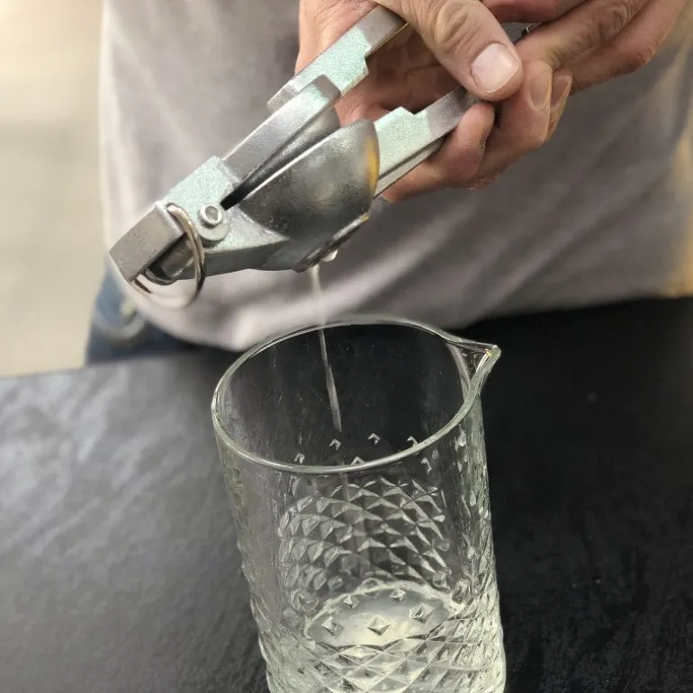 Un exprimidor de limas ideal para cualquier cocina, más, por su resistencia y robustez, se destaca como un exprimidor de limas especialmente idóneo para uso rudo en el área de coctelería.