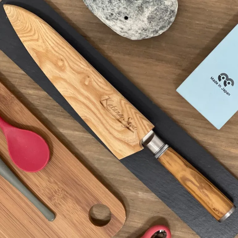 El clásico todoterreno, el cuchillo de chef, se puede utilizar para casi cualquier tarea en la cocina. Este cuchillo de chef Katana Saya mango de madera de olivo de 20 cm es fantástico para picar y rebanar verduras con rapidez, pero igual de cómodo para unir y filetear carne y pescado con facilidad.