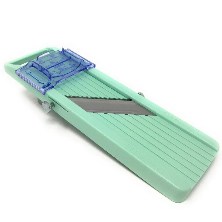 La mandolina japonesa de 6 cms forma parte de una serie de utensilios de cocina modernos. Estos te permiten darle una manera muy original a la presentación de tus platos. Puedes realizar cortes en rodajas o en juliana, por tener hojas intercambiables con cuchillas nuevas, en caso de que lo necesites. Debido a esta última característica podría mantenerse por tiempo indefinido dentro de tu lista de productos para la cocina.