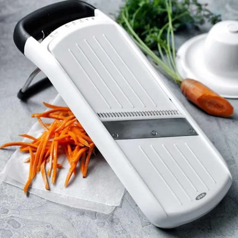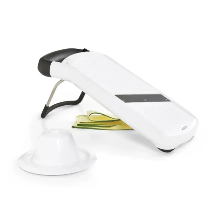 La mandolina de cocina OXO es una herramienta de corte versátil y de alta calidad que es imprescindible en cualquier cocina. Este producto cuenta con un diseño ergonómico y duradero que la convierte en una opción excelente para cortar alimentos de manera rápida y precisa.