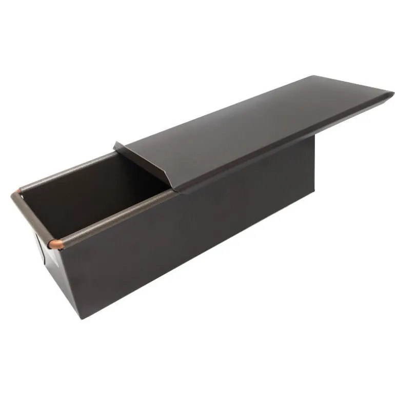 Una de las mejores cualidades de este molde para pan es su tapa corredera, que permite decidir si hornear una barra de pan de caja (con forma de bloque rectangular definida) o bien, dejar la parte superior descubierta para obtener ese esponjado superior muy característico
