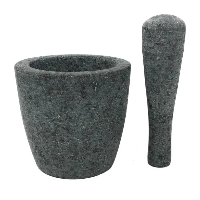 El mortero de granito permite aplastar, moler, condimentar hierbas y especias, por lo que es un regalo ideal para los cocineros y chef. El granito como es una piedra natural no permite que la misma absorba ningún líquido, lo cual hace que se puedan extraer los aceites de las especies o hierbas con facilidad.
