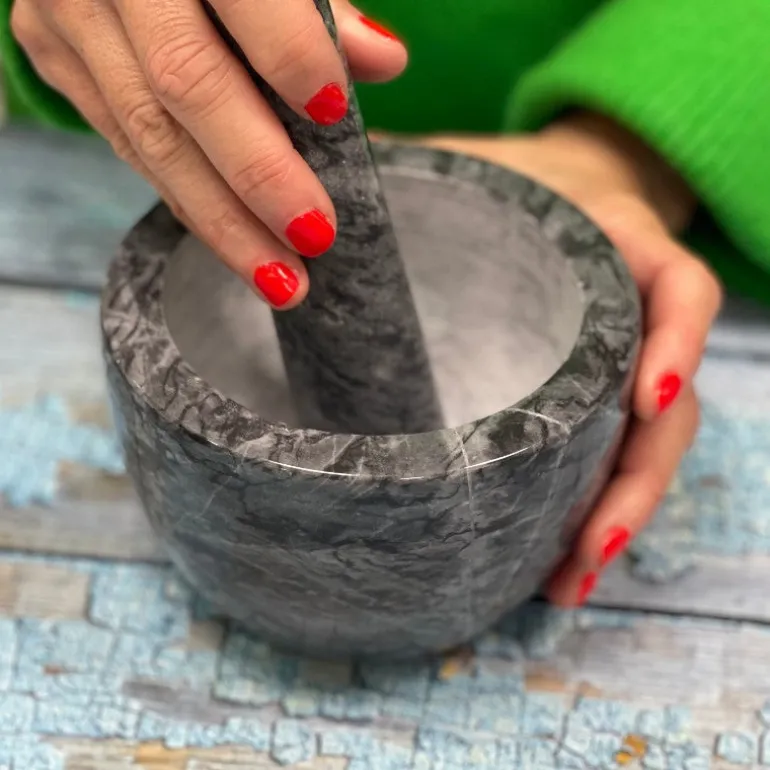 El mortero de cocina de mármol es la herramienta ideal para triturar especias de forma fina, extraer aceites, extraer aceites esenciales de hierbas y más tareas de pulverización fina.