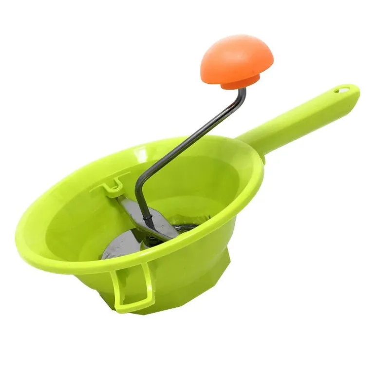 Este modelo de pasapurés de Ibili cuenta con una fabricación en plástico resistente en color verde, manteniendo un disco de colado y manivela construidos en acero inoxidable. Cuenta con un diámetro de 19 cm.