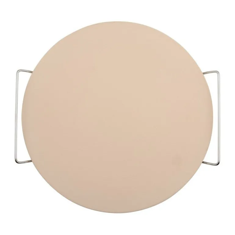 La piedra redonda para pizza es una pieza que no debe faltar en tu casa si eres amante de la exquisita cocina italiana. En los utensilios del chef tenemos disponible esta piedra para de cerámica refrectaria, ideal para darle a tu pizza o pan un estilo como el hecho a la leña. Una elaboración crujiente, dispuesta en la mesa familiar siempre caliente gracias a su soporte de acero está al alcance de tu mano por un precio imbatible.