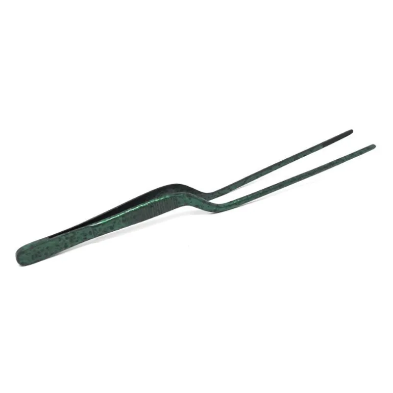 - Es una pinza pensada para manipular y emplatar alimentos cortados en trozos pequeños.