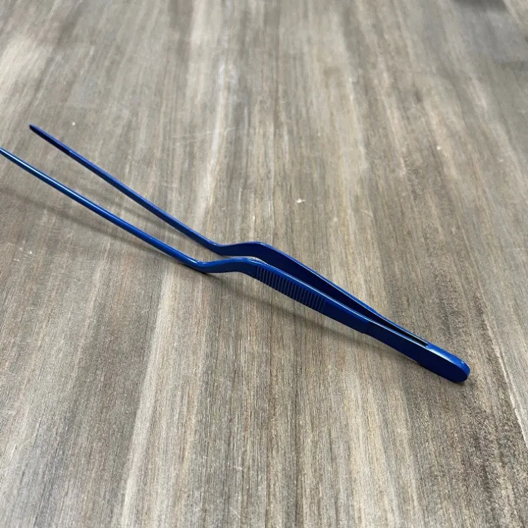 Lo anterior es tarea donde instrumentos como esta pinza para emplatar en color azul, son la mejor forma de mantener una imagen sofisticada en el servicio, esto al manipular los alimentos con destreza y refinamiento frente al comensal.