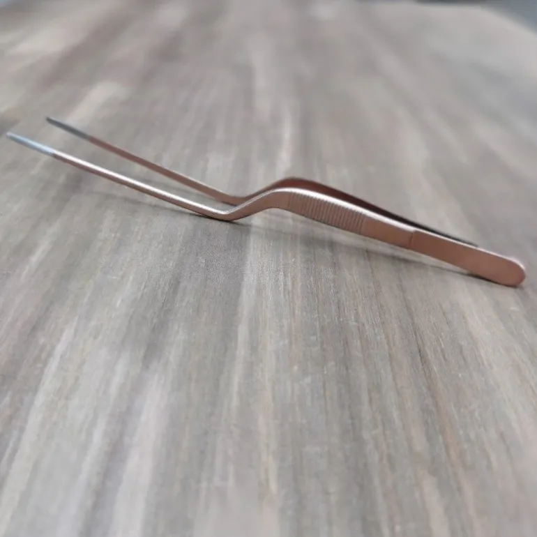 Pinza para emplatado y sushi con recubrimiento de titanio en oro rosa