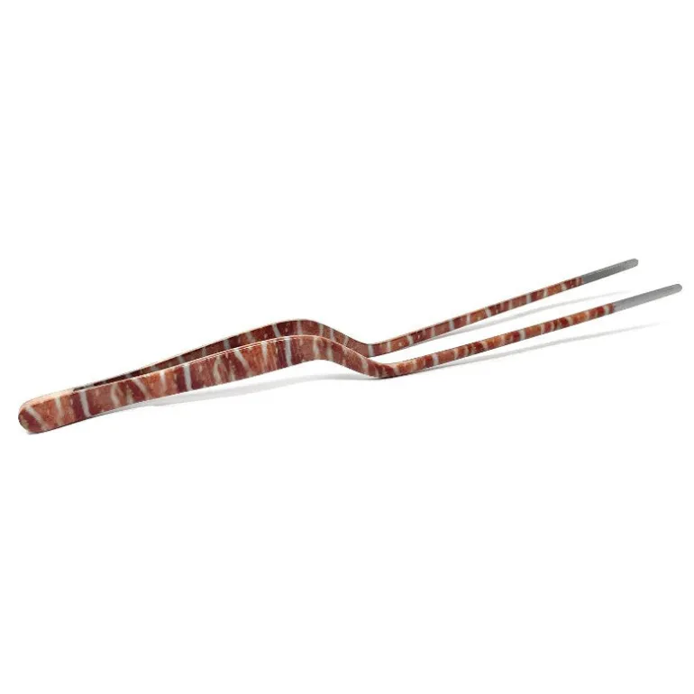 - Es una pinza pensada para manipular y emplatar alimentos cortados en trozos pequeños.