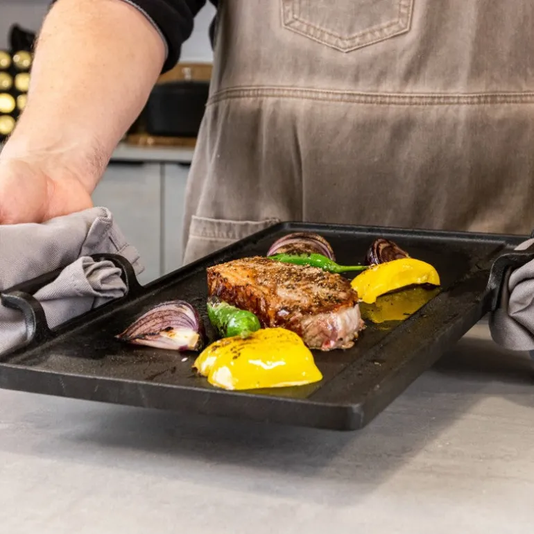 Una plancha Teppanyaki es una parrilla plana de origen japonés que se utiliza para cocinar alimentos en la cocina. Es una plancha grande y plana, a menudo de forma rectangular, fabricada en hierro fundido y se utiliza comúnmente en restaurantes de comida japonesa.