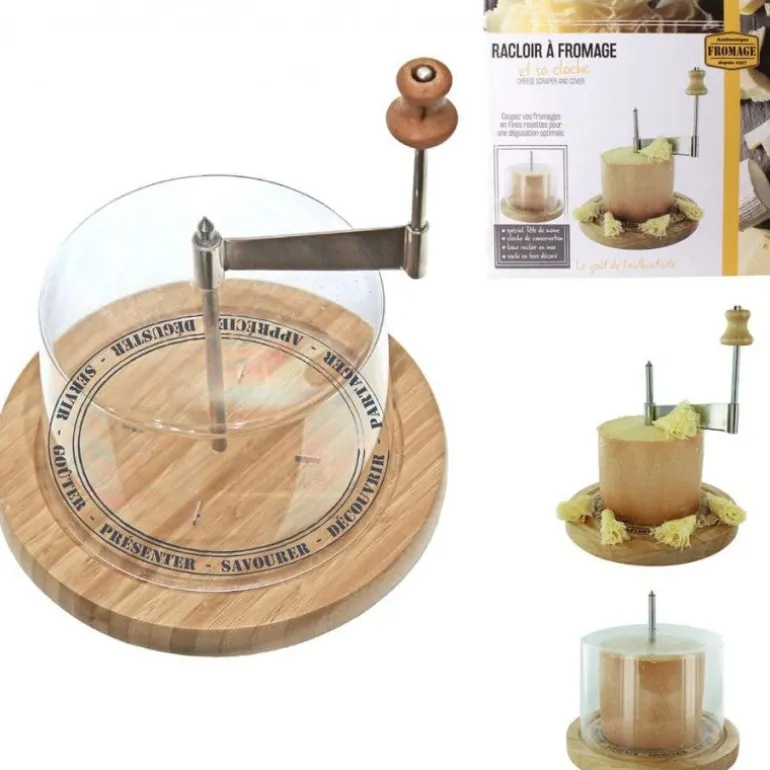 - Con este utensilio puedes rallar el queso en forma de flor este girolle es muy utilizado en la cocina suiza para hacer virutas de queso en forma de flor la cual la llaman Girolles. Está fabricado sobre una base de madera resistente con eje su hoja en acero y la tapa de plástico.