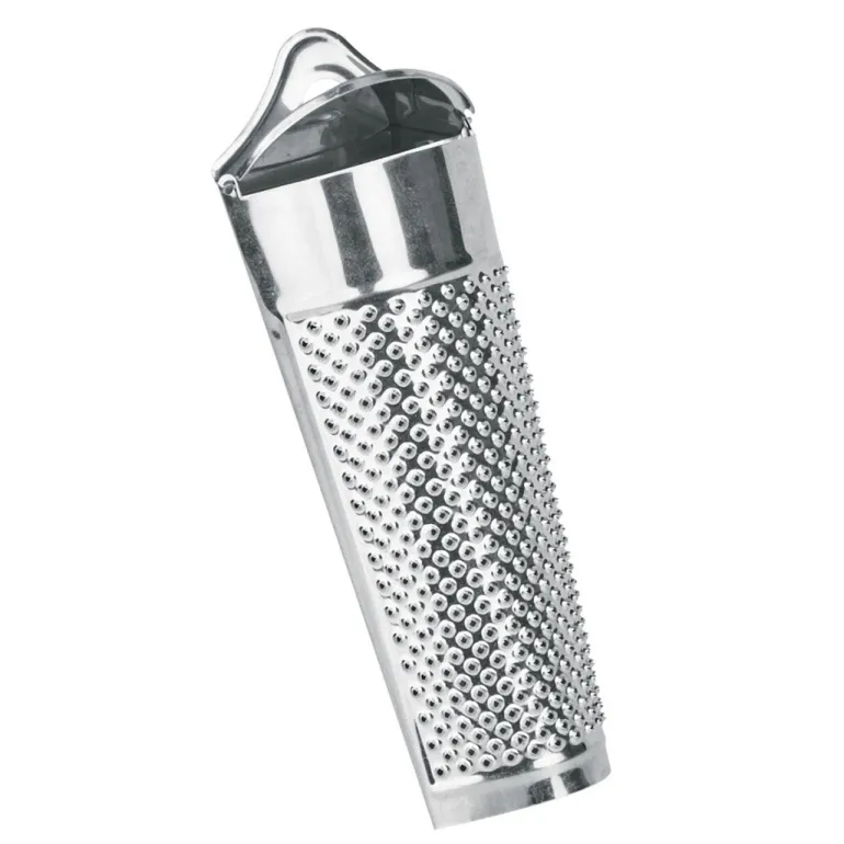 Este rallador de nuez moscada está fabricado en acero inoxidable y tiene la capacidad de rallar no solo nuez moscada, sino también la piel de cítricos como lima, naranja y limón. Con su diseño duradero y versátil, podrás disfrutar de un sabor fresco y añadir un toque especial a tus platos. ¡Añade un toque de sabor con este rallador!