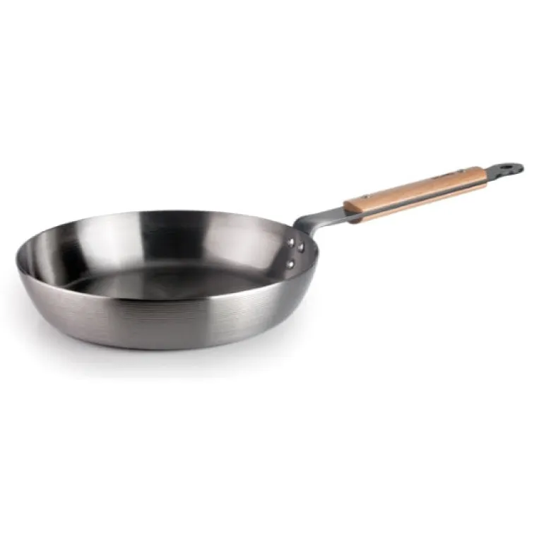 - Sartén KarbonSteel fabricada en acero al carbono (99% hierro, 1% carbono)