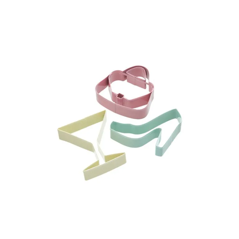 - Juego compuesto por tres cortapatas con forma de Zapato, Bolso y copa de coctel.