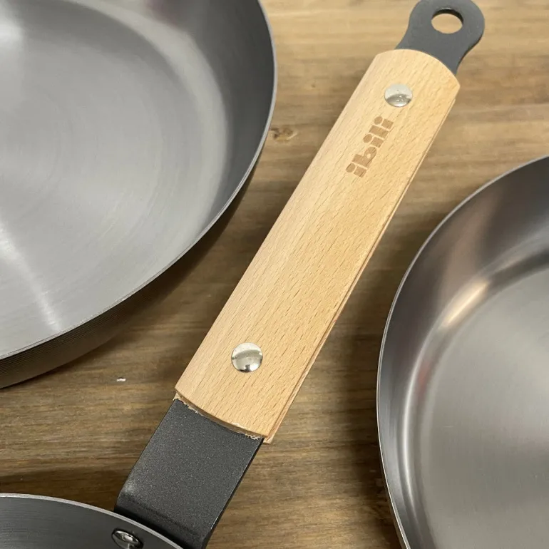 - Sartén KarbonSteel fabricada en acero al carbono (99% hierro, 1% carbono)