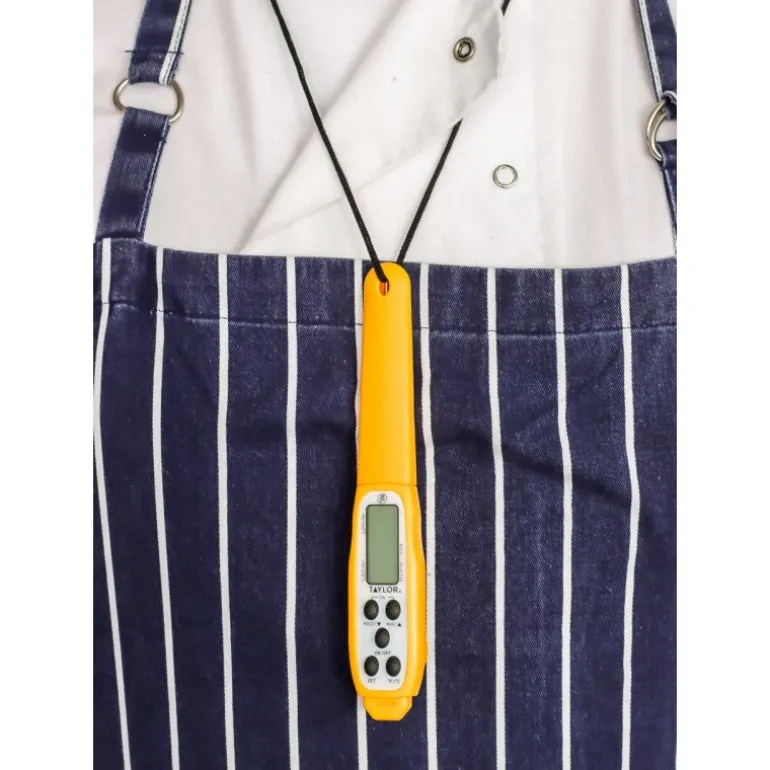 Este tipo de termómetro de cocina digital tiene una gran precisión en el momento de ver la temperatura que necesitan algunos alimentos, posee además una pantalla digital la cual hace más fácil su lectura. Suele ser una herramienta importante en la cocina de los profesionales ya que gracias a ellos se verifica el grado de temperatura que se necesita para evitar que algunos microorganismos se multipliquen de forma peligrosa ya que los alimentos deben de cocinarse bien y a temperaturas adecuadas. El termómetro es ideal para la seguridad de los alimentos ya que indica la temperatura exacta con la cual se deben cocinar para que no pierdan su textura, sabor, nutrientes e incluso previenen su contaminación. >