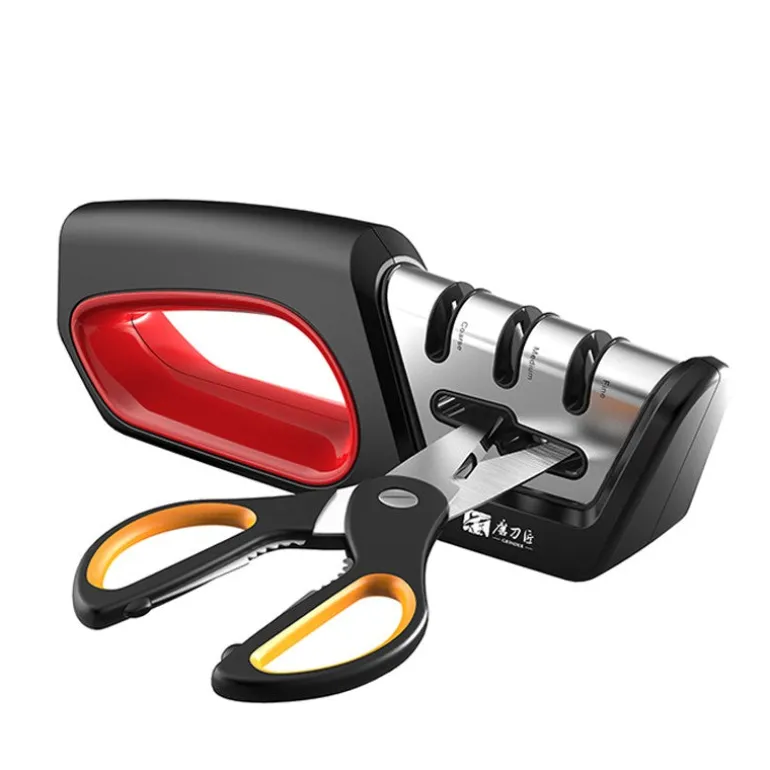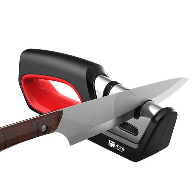 El afilador de cuchillos y tijeras Taidea es un afilador de cuchillos y tijeras todo en uno con dos piedras de afilar de cerámica y una de acero de tungsteno y es muy fácil de usar.