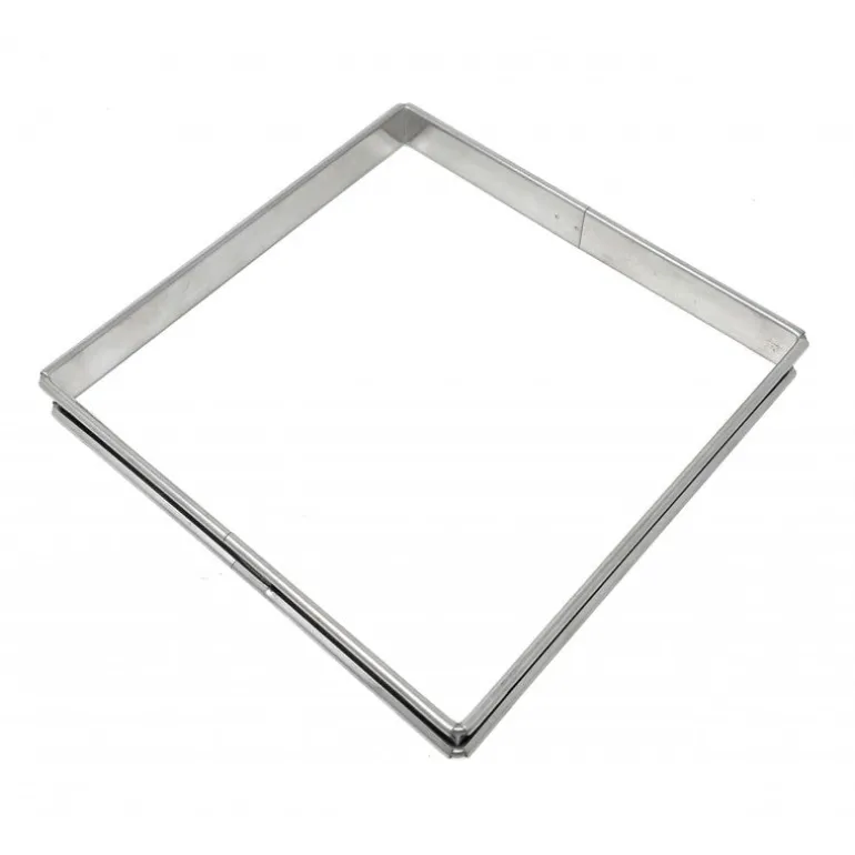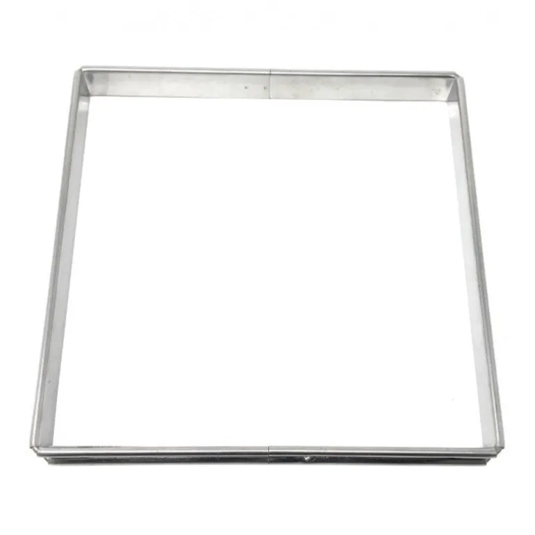 Estos aros cuadrados de acero inoxidable de 2 cms de altura se destinan particularmente a la confeccion de tartas. El aro para las tartas es mas facil de utilizar que un molde porque es menos voluminoso sobre un placa de pasteleria. Ademas es muy facil desmoldarlo.
