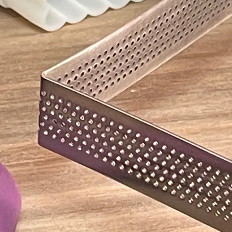 El aro para tarta rectangular perforado es perfecto para la elaboración de pasteles, quiches con un acabado totalmente profesional.