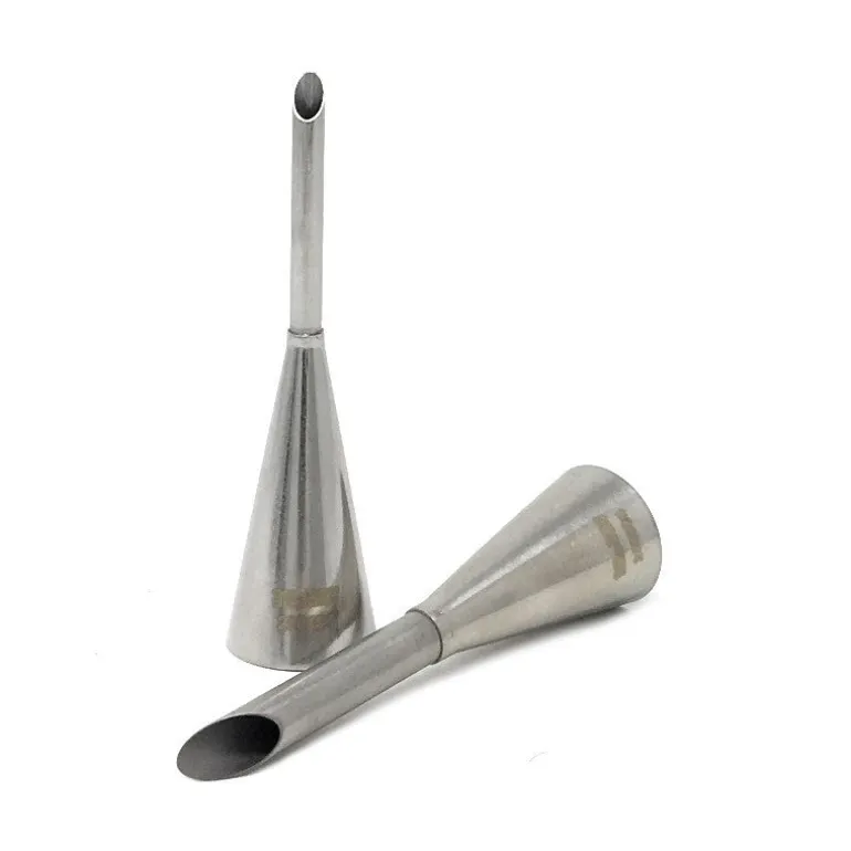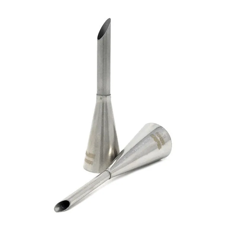 Se diferencia de la boquilla para decorado en que, gracias a su formato cilíndrico de punta alargada, facilita el romper discretamente la corteza de la masa ya horneada de nuestro postre y, con ello, nos permite rellenar con cremas, chocolate y otros ingredientes viscosos utilizados en repostería.