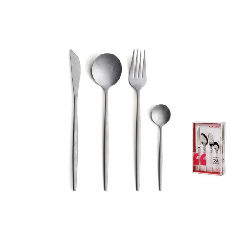 Una cubertería de 24 piezas es un conjunto de utensilios de mesa que se utiliza para comer. Este conjunto generalmente incluye 6 cucharas, 6 tenedores, 6 cuchillos y 6 cucharillas de cafe o postre