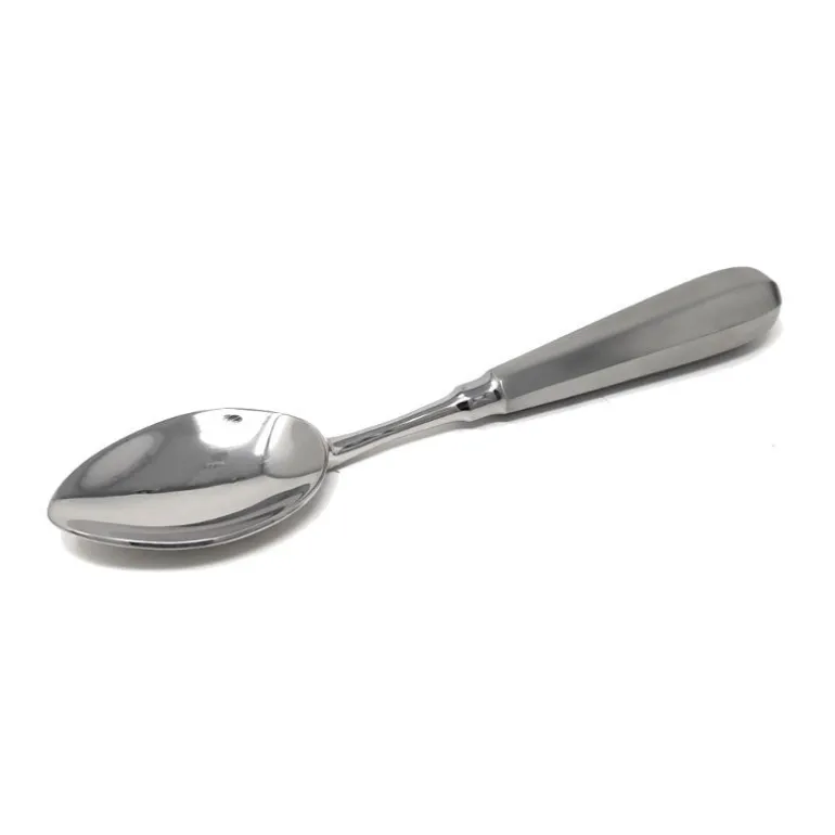 La cuchara para quenelles se encuentra construidas en acero inoxidable de alta calidad. Si bien su diseño en primera instancia no parece diferente al de otra cuchara, al tomarla se puede notar que cuenta con un diseño más cóncavo en la cucharilla, forma ideal que permite al profesional adquirir rápidamente destreza para dar fácilmente la forma ovalada de quenelles a los distintos alimentos.