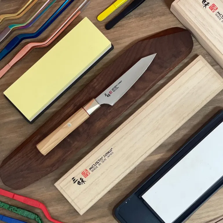 Los cuchillos Mcusta están fabricados en Seki y son el pináculo de esta síntesis entre la tradición artesana japonesa y la tecnología moderna. Cada cuchillo es ensamblado, terminado y revisado a mano por los artesanos del equipo Mcusta. ¡Los cuchillos Mcusta están considerados entre los mejores del mundo!