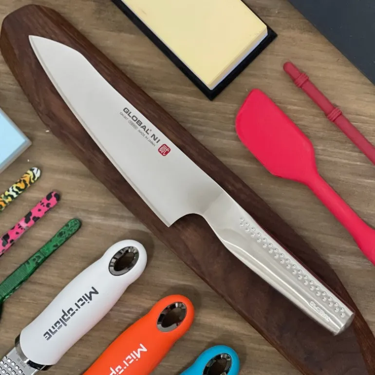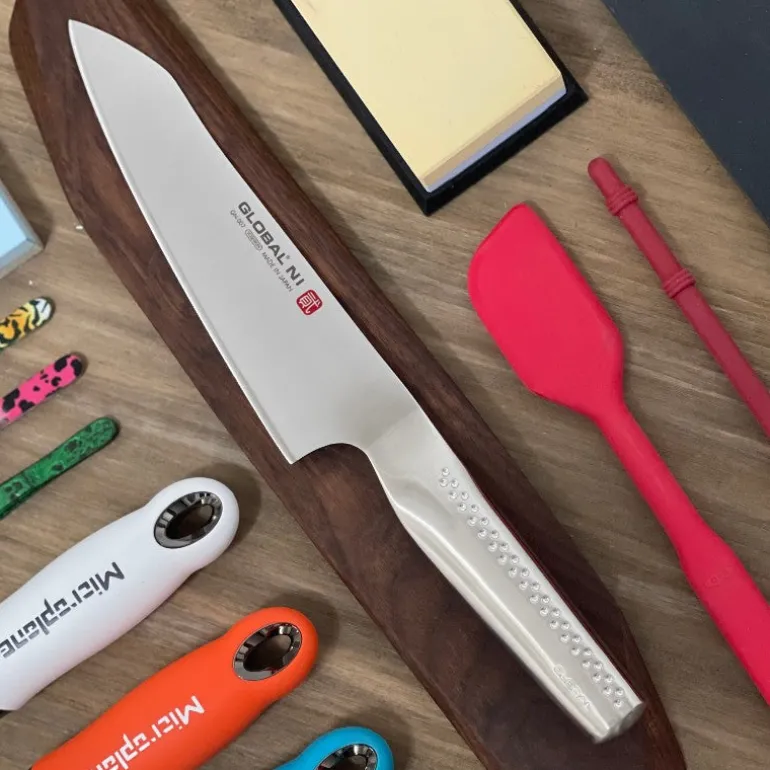 Los cuchillos japoneses de Global NI son los mejores del mundo. Están fabricados con acero de alta calidad y tienen un filo que puede cortar cualquier cosa. Estos cuchillos son perfectos para cortar carne, pescado, verduras y frutas. Tienen una hoja curvada que permite cortar los alimentos fácilmente sin tener que ejercer mucha presión con la mano. Esto hace que sean fáciles de usar y seguros para que no acabe cortándose mientras los usa. La serie Global Ni tiene muchos tipos diferentes de cuchillos que puedes comprar en función del uso que les vayas a dar. También están disponibles en diferentes tamaños, por lo que hay algo para todo el mundo, independientemente del tamaño de sus manos o del apetito que tengan a la hora de cenar.