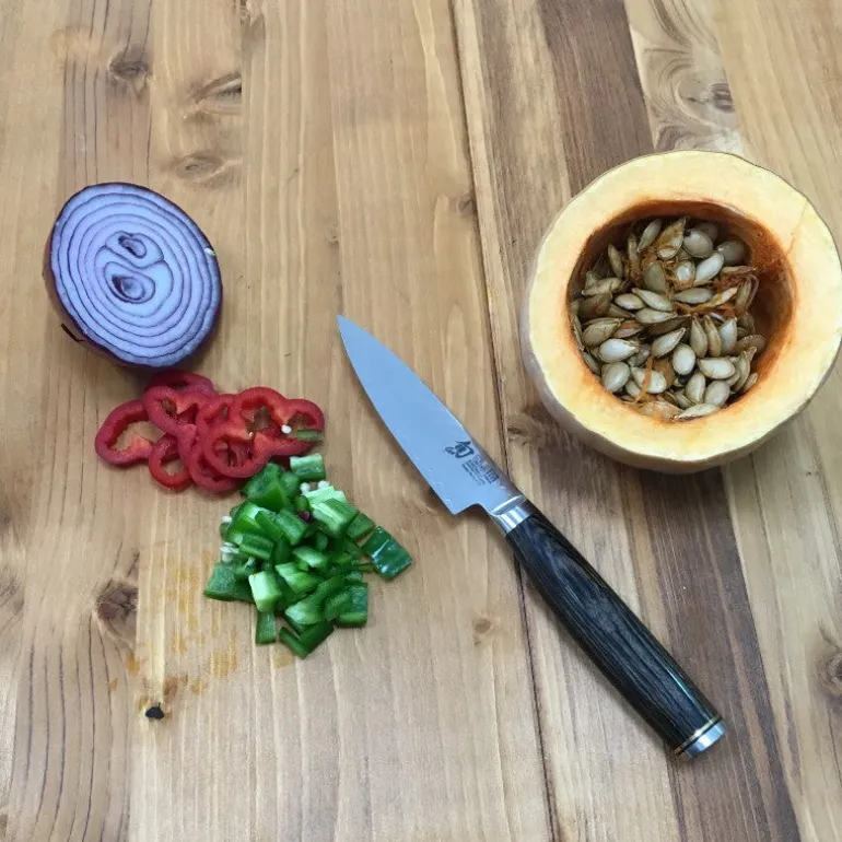 El cuchillo Shun premier tipo puntilla de cocina te ofrece un afilado permanente lo que permite que al momento de pelar las verduras o frutas solo salga la cascara sin quitarle parte de la pulpa. Por el filo que posee puedes pelar más alimentos con rapidez y seguridad ya que solo saldrá la concha.