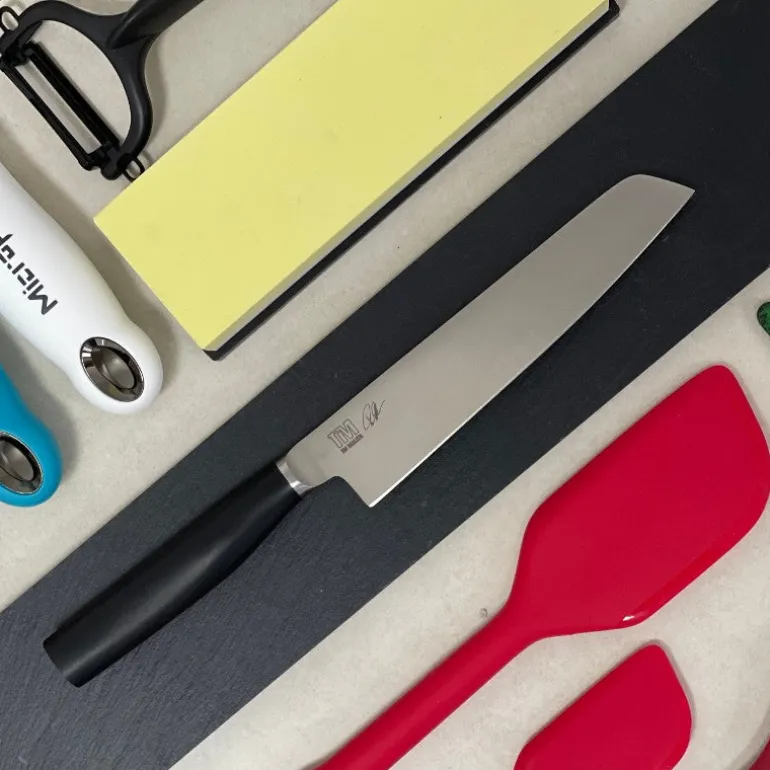 La construcción de un cuchillo de cocina de calidad requiere de dos enfoques de conocimiento, el primero abarca el manejo y trabajo sofisticado con el acero y el segundo engloba el conocimiento que se requiere para definir cómo modelar la hoja perfecta en base al uso que se le dará. Todo esto lo tiene la serie Tim Mäelzer Kamagata, una serie de cuchillos de cocina profesionales respaldada en su construcción con la técnica sofisticada de forjado de Kai, que en conjunto con el diseño de hoja de corte desarrollado por Tim Mäelzer nos ofrecen toda una gama de cuchillos profesionales ideales para el trabajo duro en la alta cocina.
