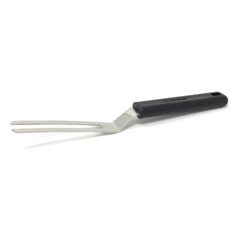 La espátula horquilla de emplatado: es similar a la espátula pero como su nombre indica, tiene forma de horquilla. Esto facilita que, si se quiere emplatar alimentos con jugo, éste no se deposite con la espátula por el riesgo de que manche el plato. Son equipos indispensables para las cocinas de establecimientos de hostelería que realizan cocina creativa o de vanguardia. Pero también puede ser un buen obsequio para los cocineros apasionados.