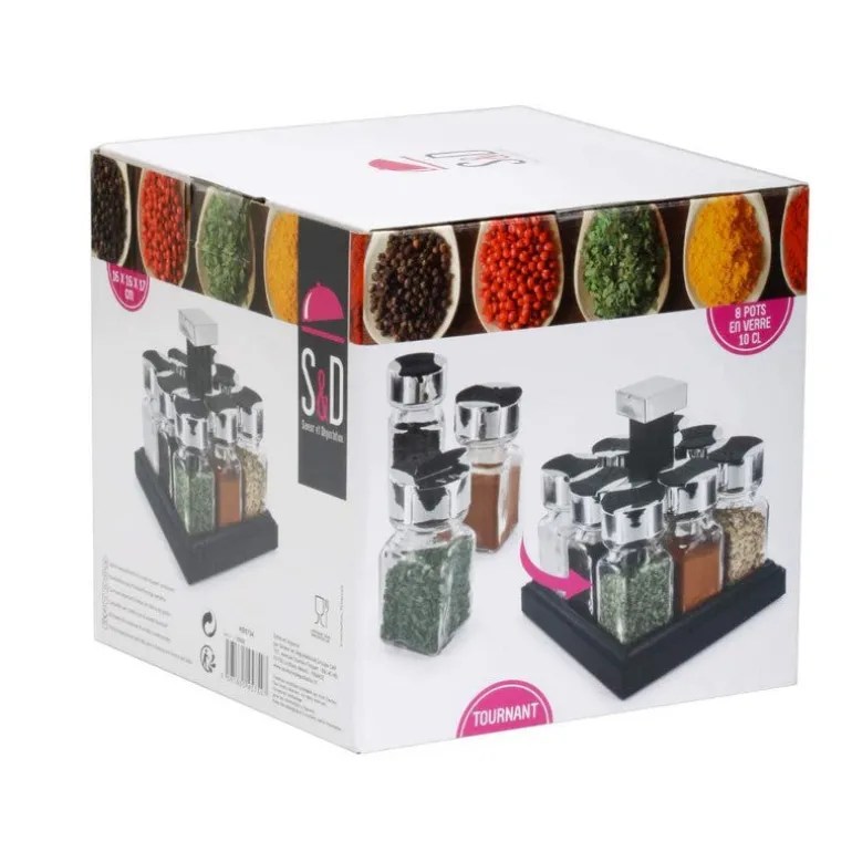 Este especiero sobremesa, nos permite tener muy a mano las especias sobre la encimera de la cocina. Indispensable para darle un toque de diseño moderno a tu cocina, y también, una estupenda idea para un regalo útil y bonito, ya que puede incluso, llevarse a la mesa.