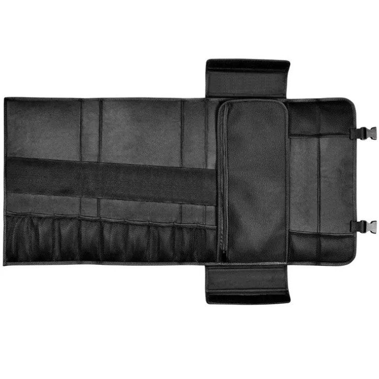 Cuenta con dimensiones de 90 cm x 23 cm, con tela tipo lona altamente resistente al filo. Su capacidad permite almacenar y transportar hasta 9 cuchillos grandes y 8 pequeños.