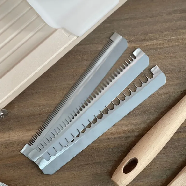 - Cuchillas intercambiables mandolina Benriner disponible en tres tamaños.