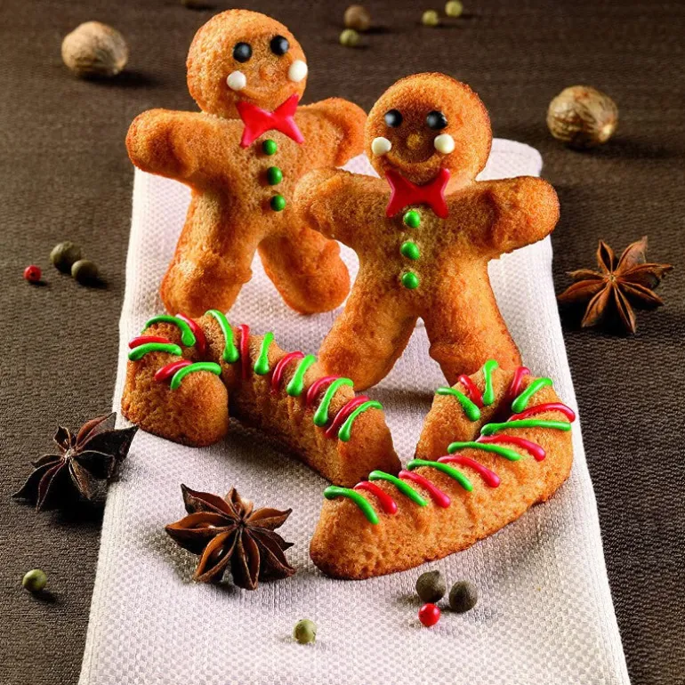 Bandeja con 6 cavidades: 4 muñecos de jengibre y 2 bastones de caramelo.