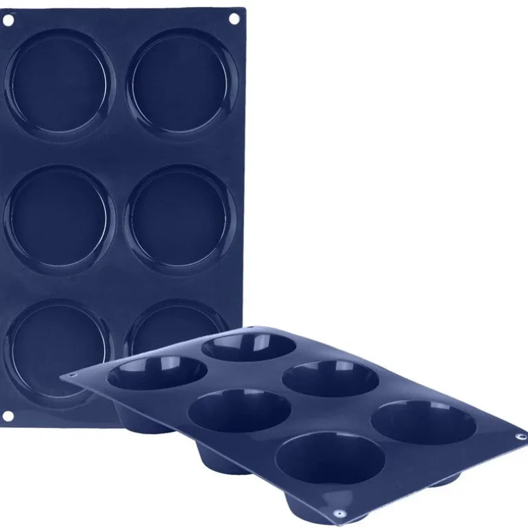 Se trata de una bandeja con 6 cavidades diseñada para hacer muffins principalmente, pero también es posible utilizarla para elaborar cualquier clase de postres. Como son moldes muy versátiles puedes usarlos para postres fríos como jalea dulce, gelatina, etc. y para postres horneados, flan, bizcocho, muffin, etc.